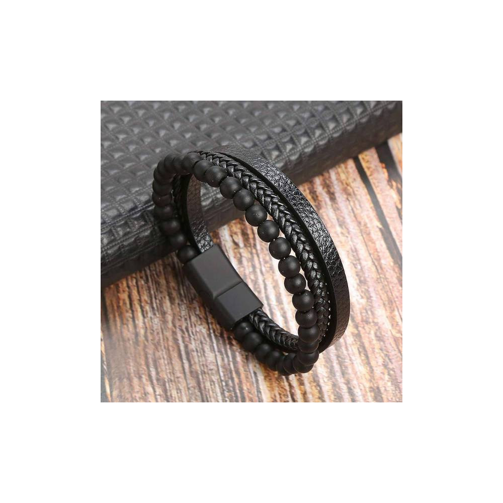 5 10 Bracelet Force & Élégance : Cuir Tressé et Agate Noire - Charisme Masculin et Énergie Protectrice
