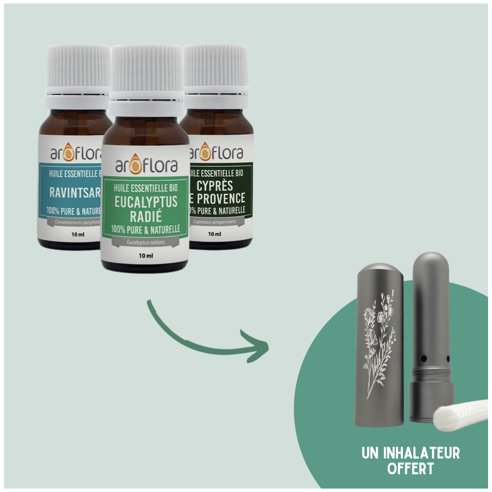 Découvrez le pack sur mesure RESPIRATION d'Aroflora et recevez en cadeau un inhalateur nomade pour profiter des bienfaits des huiles essentielles à tout moment de la journée !